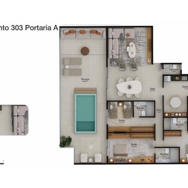 Quais são os tipos de apartamentos disponíveis no Merino? O Merino oferece apartamentos de 2 e 3 quartos com varandas amplas, além de coberturas com terraços privativos e opção de piscina. As unidades foram projetadas para oferecer conforto, integração dos ambientes e qualidade de vida no Jardim Oceânico.